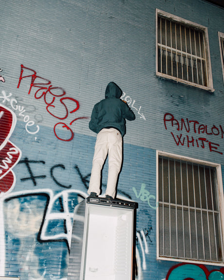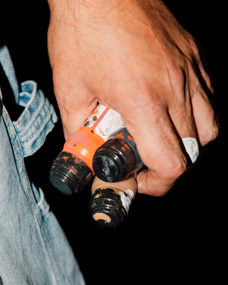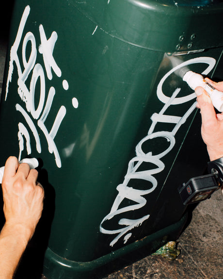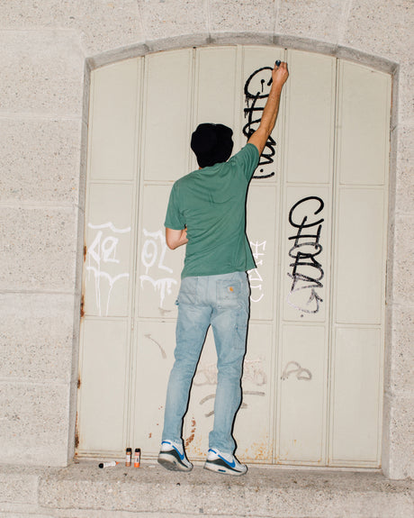 New-generation street cat Leoll and international legend Chob uses a set of squeezers that replicate the unmistakable colors of American workwear, representing two different but aligned generations of writers, as cross-cutting over the years as a pair of Double Knee carpenters or a Squeezer.
