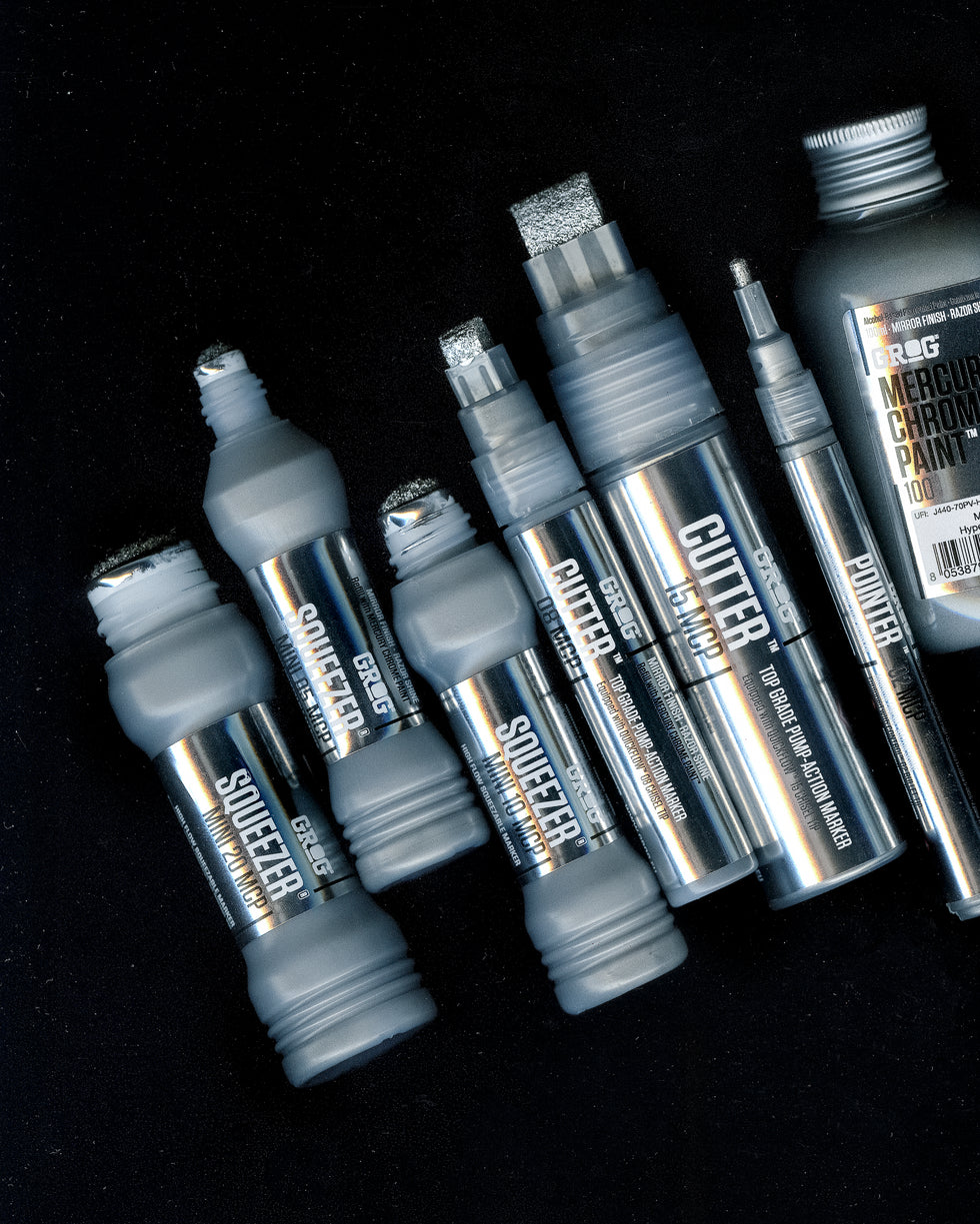 Grog drops Mercury Chrome Paint™, a full line of markers and refills built for extreme mirror finish and full-impact tags. Clean slices or drippy carnage—this chrome screams.
